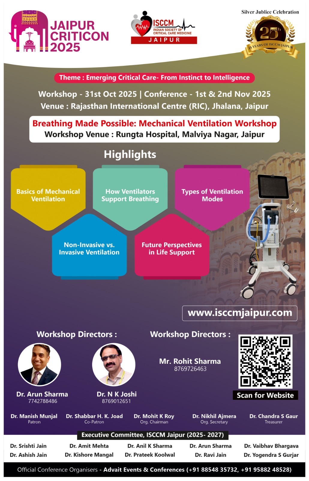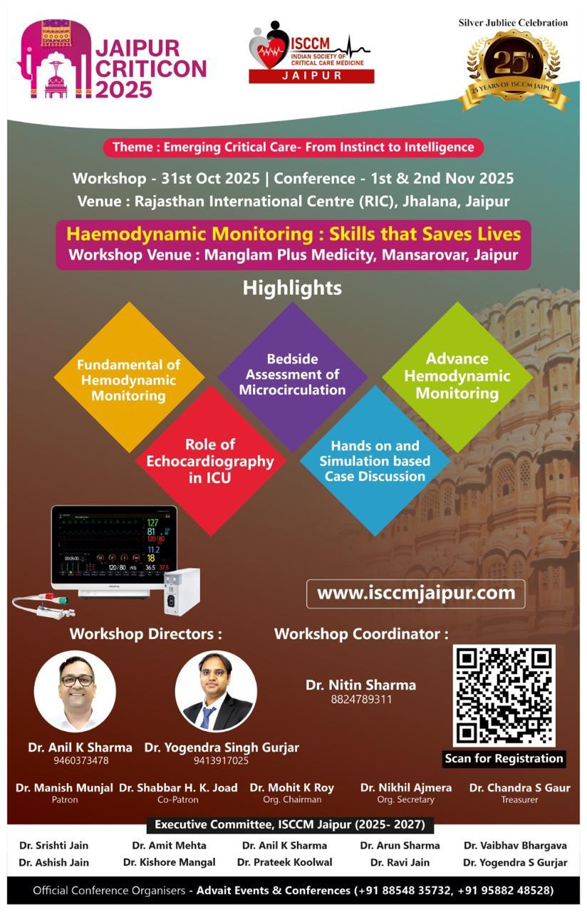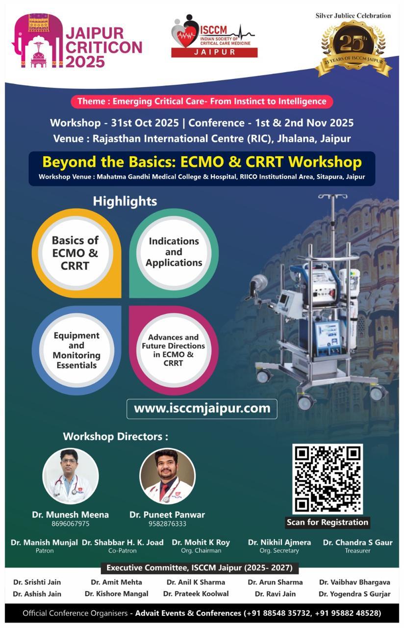 It gives us immense pleasure to extend a cordial welcome to JAIPUR CRITICON 2025 scheduled from 31st October to 2nd November 2025 at the Rajasthan International Centre, Jhalana, Jaipur. The pre-conference workshop is scheduled on 31st October 2025.